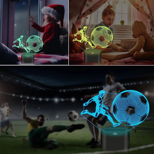 3D Illusion Lamp Football Player Night Light with Remote 16 Color Changing Desk Lamp Bedroom