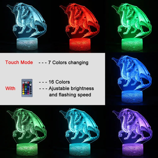 Dragon Night Light for Kids 3D Night Lamp 16 Colors Changing With Remote Control Room Decor
